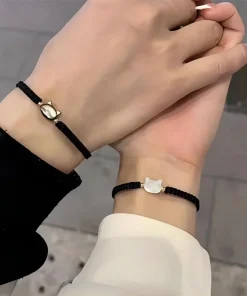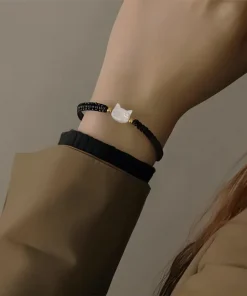 Natural Moonstone Obsidian Bracelets Minimalist Fidget Bracelet Handmade Cute Black White Cat Bracelet Party Accessories Jewelry